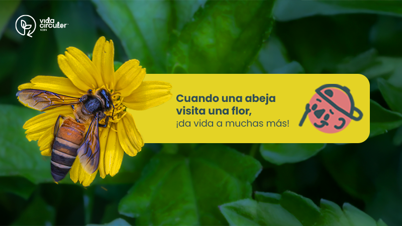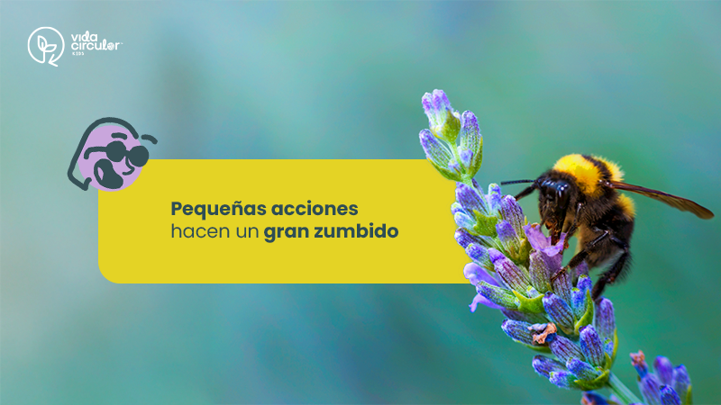 Así que, mientras las abejas polinizan flores para que tengamos frutas y verduras, nosotros podemos ayudar reciclando plásticos para que vuelvan a usarse y no contaminen. ¡Juntos, personas y abejas, hacemos del planeta un lugar más feliz y lleno de vida!